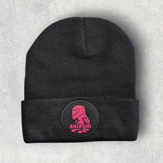 Bonnet noir à pompon " Motarde tatouée " holographique