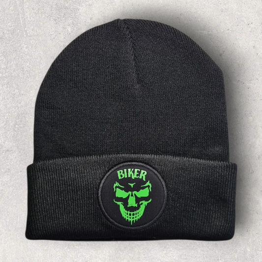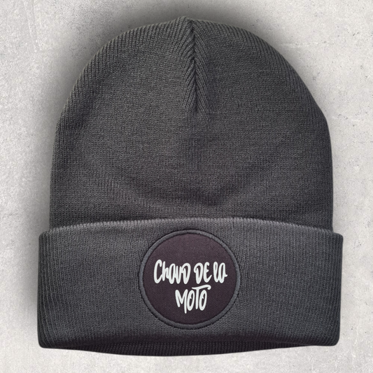 Bonnet noir à pompon pour motard " Problème/Solution "