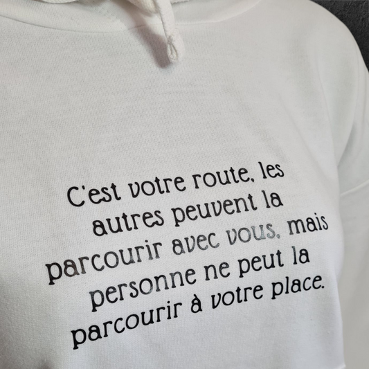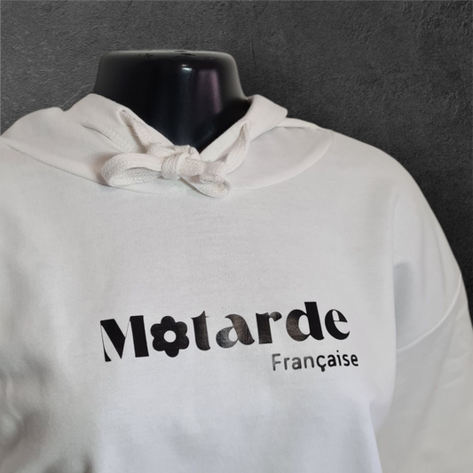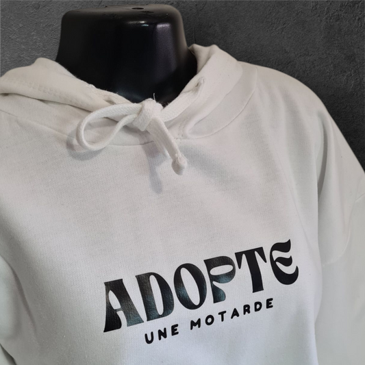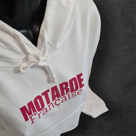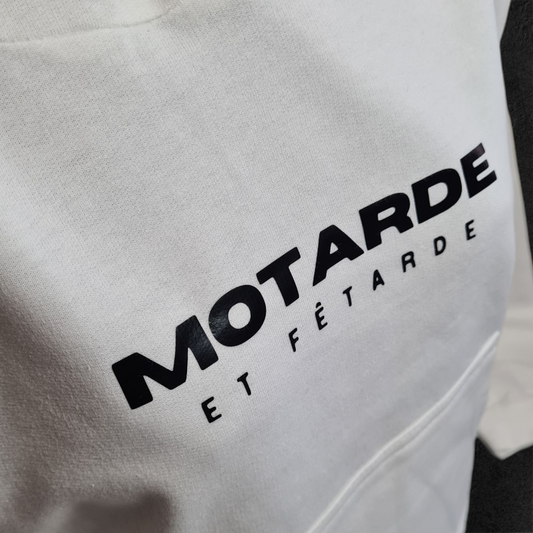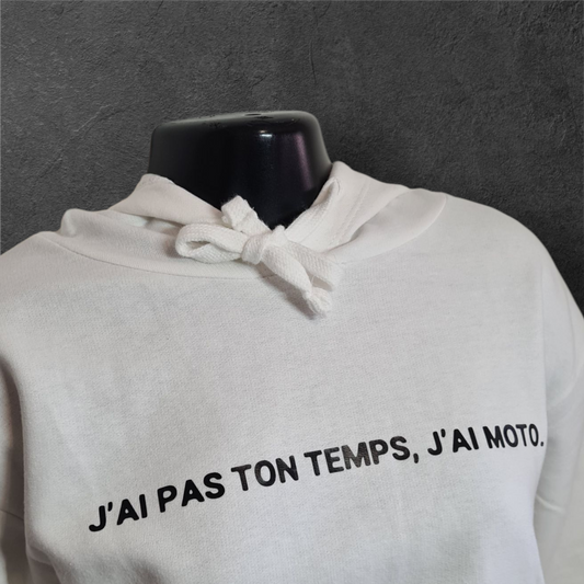 Sweat à capuche court " J'ai pas ton temps, j'ai moto. " pour motarde