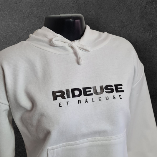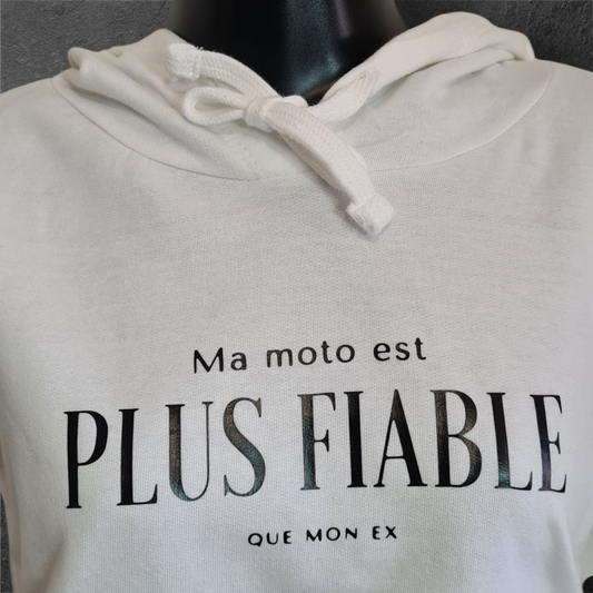 Sweat à capuche court " Ma moto est plus fiable que mon ex " humour pour motarde
