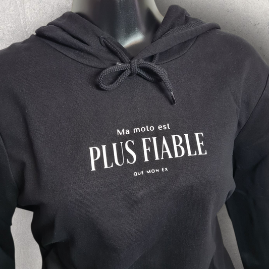 Sweat à capuche noir " Ma moto est plus fiable que mon ex "