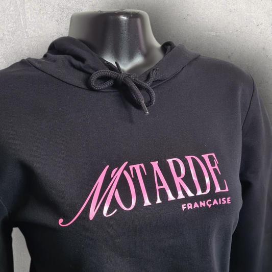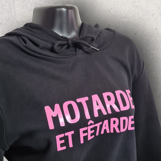 Sweat à capuche noir " Motarde et fêtarde " rose