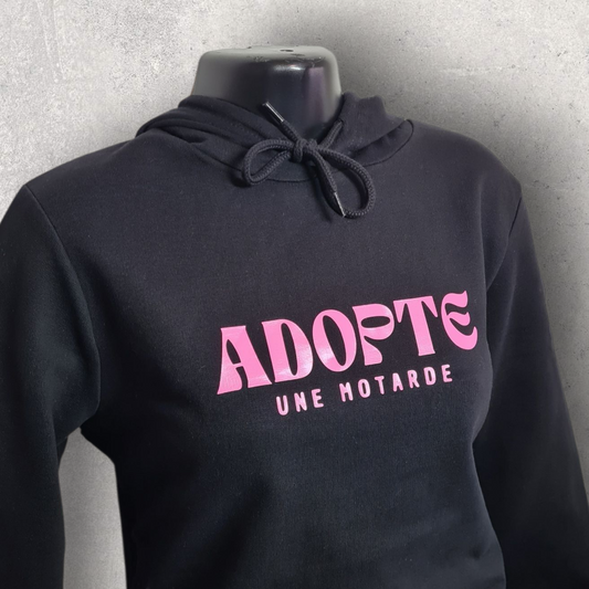Sweat à capuche noir femme " Adopte une motarde "
