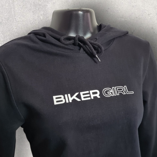 Sweat noir à capuche " Biker girl " pour motarde