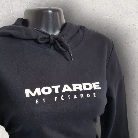 Sweat à capuche noir femme " Motarde et fêtarde "