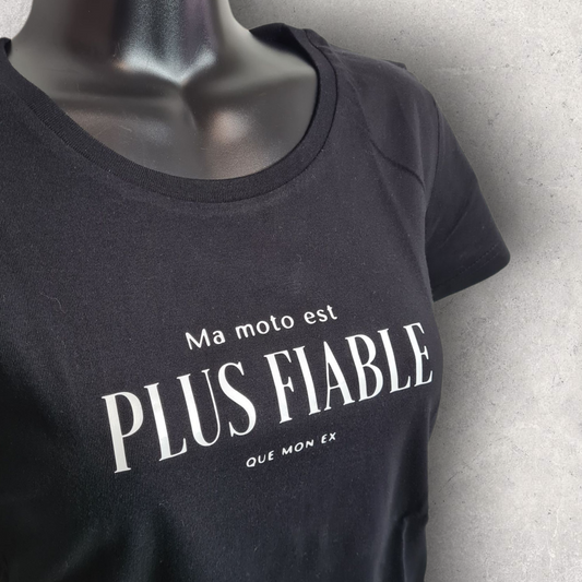 T-shirt noir " Ma moto est plus fiable que mon ex "