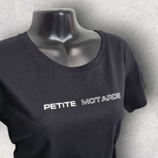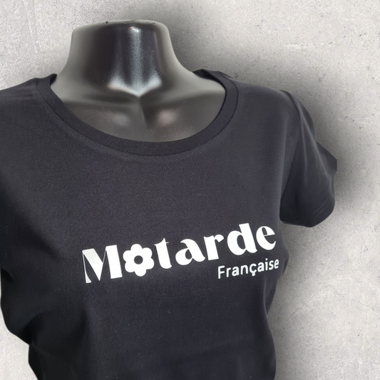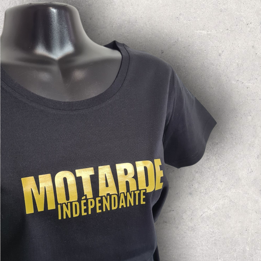 T-shirt noir à manche courte femme " Motarde indépendante " doré