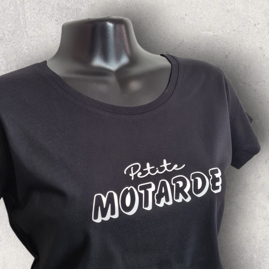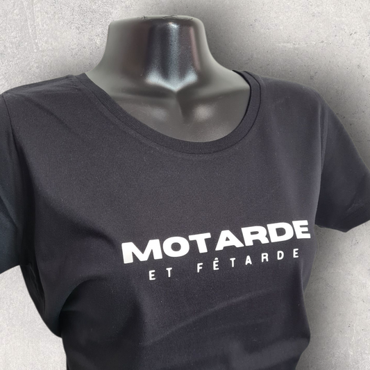 T-shirt noir à manche courte femme " Motarde et fêtarde "