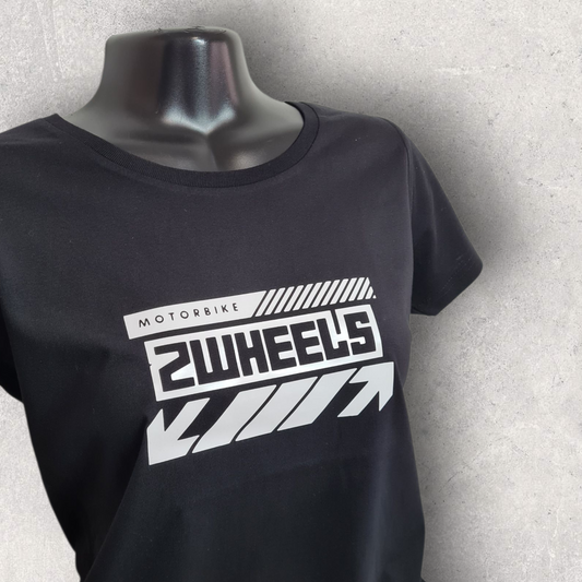T-shirt noir à manche courte femme " Motorbike 2wheels "