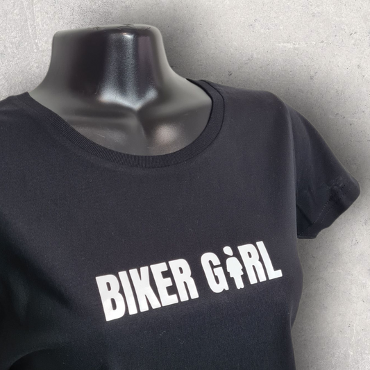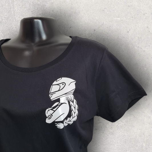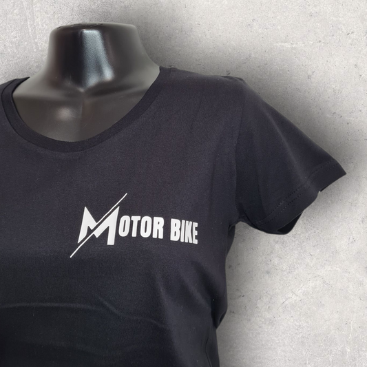 T-shirt noir à manche courte femme " Motorbike " pour motarde