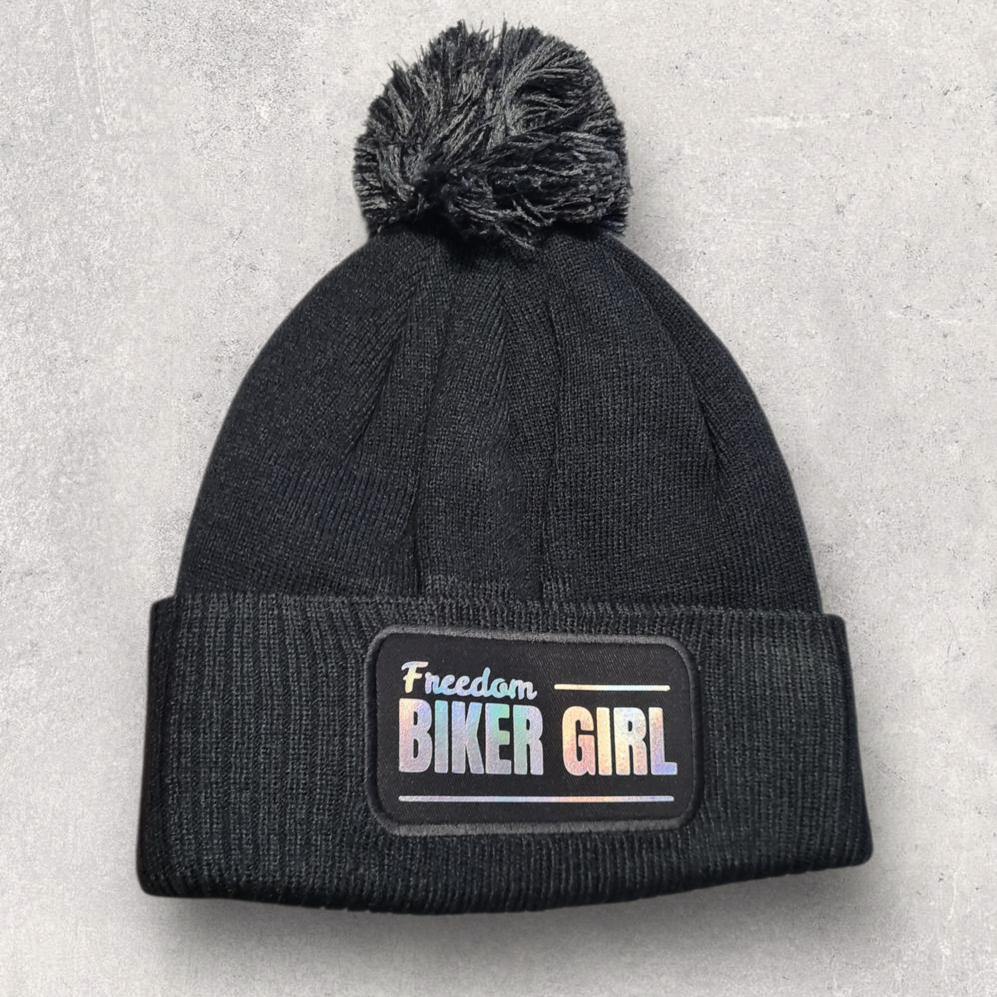 Bonnet à pompon " Freedom Biker Girl " holographique