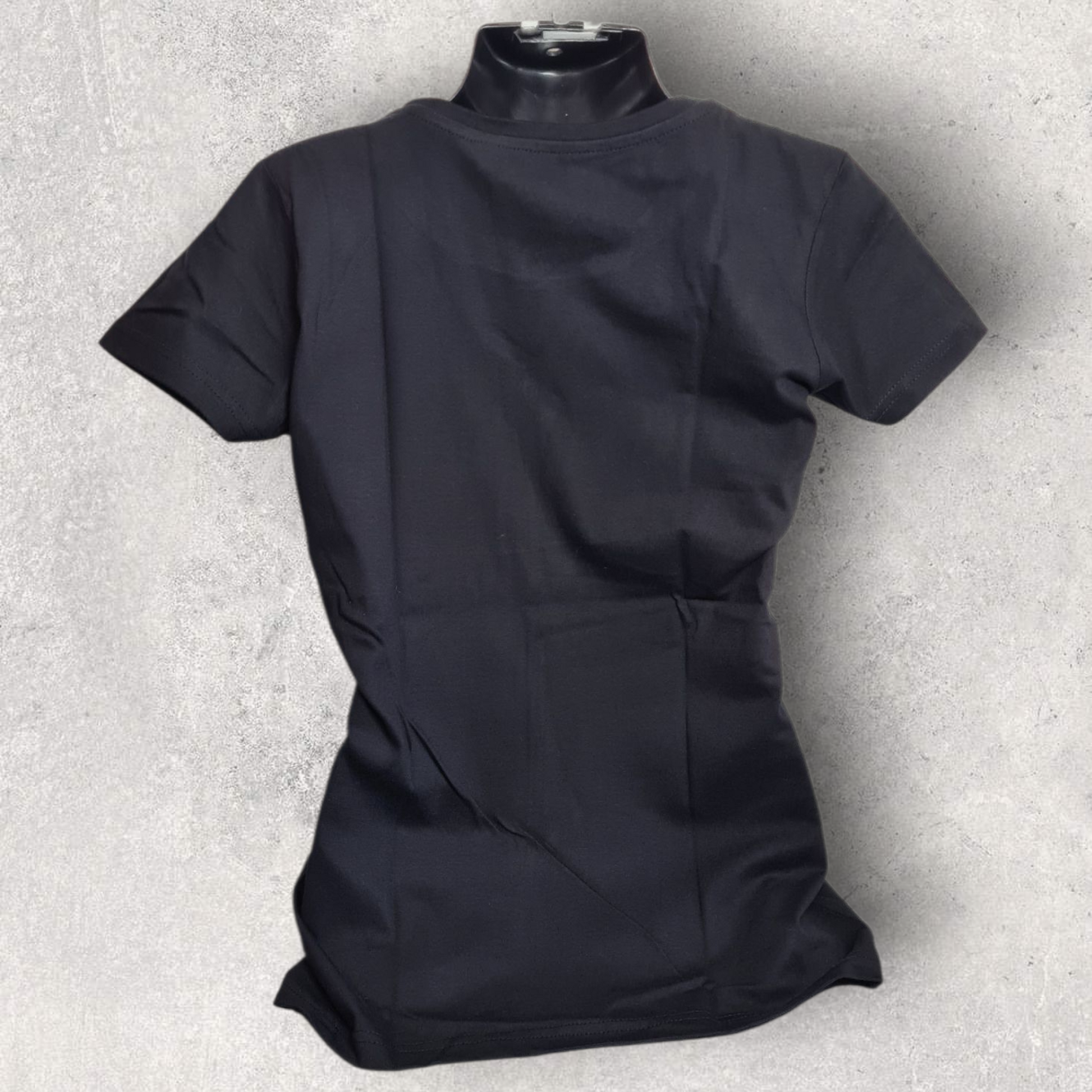 T-shirt noir 100 % coton, confortable et stylé, parfait pour les motardes au look simple et affirmé.